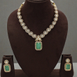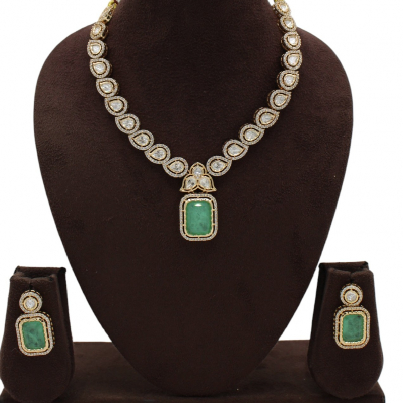 Elevate your ethnic look with the refined elegance of the Emerald Grace Polki Necklace Set. Designed with a seamless row of teardrop-shaped polki stones, this necklace exudes timeless sophistication.