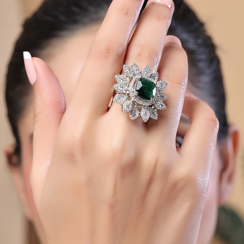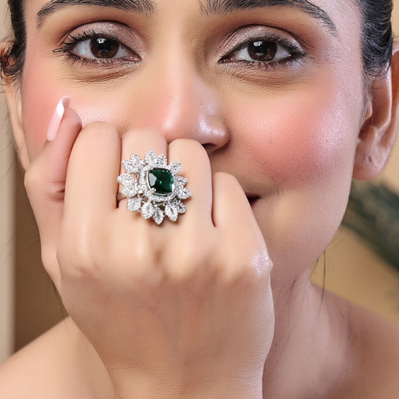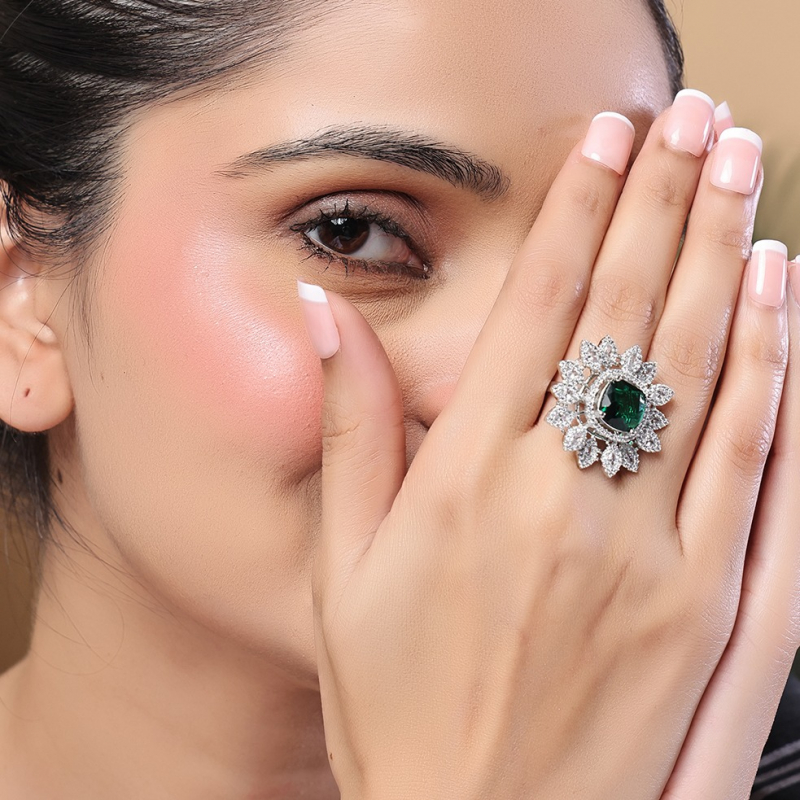 Add timeless elegance to your jewelry collection with this stunning white diamond-studded ring . Designed with finely set sparkling stones, this ring offers a luxurious shine that enhances any look. The sleek and minimal band structure makes it perfect for both everyday wear and special occasions. Its brilliant white stones reflect light beautifully, creating a graceful and sophisticated appeal. Lightweight and comfortable, this ring pairs effortlessly with both western and ethnic outfits, making it a versatile must-have accessory.
