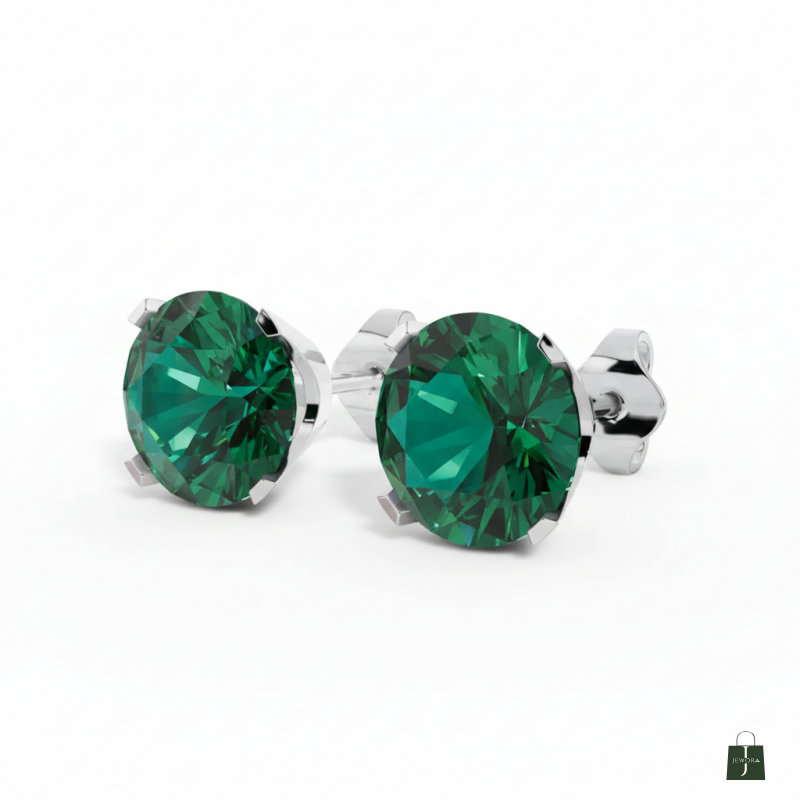 Showcase classic elegance with The Emerald Isle Studs. These timeless earrings feature a single, brilliant round-cut emerald (or rich green gemstone) set securely in a polished four-prong basket. The round cut maximizes the stone's deep, desirable green color and light-reflecting properties. Crafted in durable silver-tone metal, these studs offer a clean, sophisticated look that provides a beautiful pop of color. They are perfect for everyday wear, adding a touch of luxury, or as a thoughtful May birthstone gift.