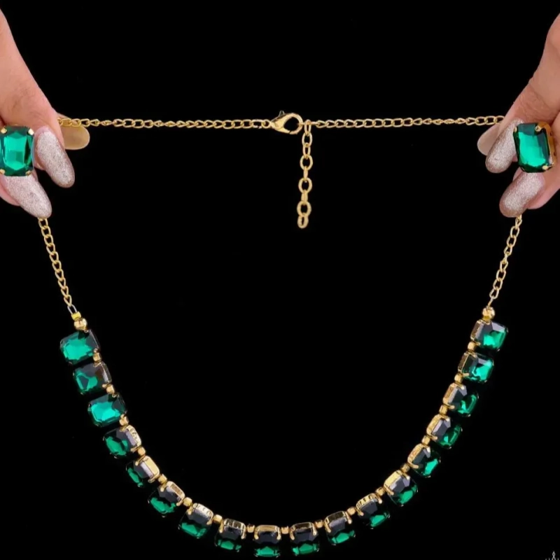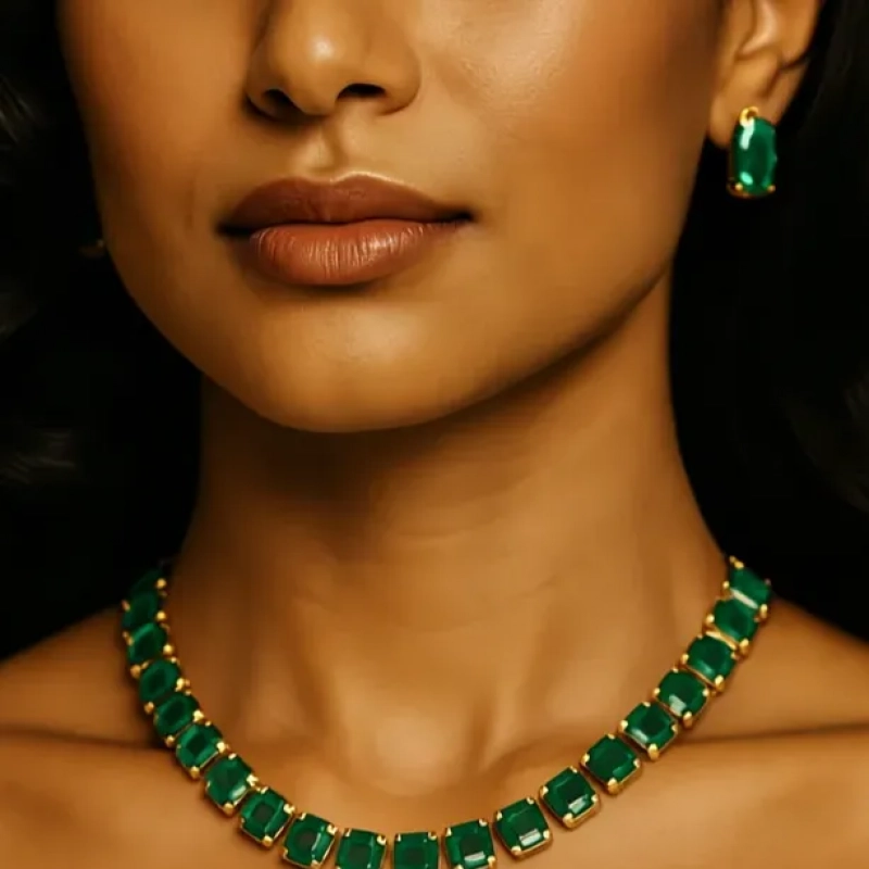Embrace effortless luxury with Ushve’s Emeralds Single-Line Necklace Set — a timeless creation that highlights the deep, captivating hue of emeralds in a sleek, minimalist silhouette. This exquisite set features a delicate chain adorned with a seamless line of meticulously cut emerald stones, each expertly placed to catch the light and radiate vivid brilliance with every move. Crafted with high-quality, tarnish-resistant materials, this necklace promises enduring shine and durability, ensuring it remains a cherished piece for years to come. Its graceful simplicity offers versatile styling — perfect for adding a refined touch to daily ensembles or pairing with elegant attire for special celebrations. Complete with matching emerald-hued earrings, this set transitions beautifully from understated sophistication to layered opulence. Whether celebrating personal milestones or gifting someone special, this piece captures the essence of quiet luxury and timeless charm, inviting you to showcase your unique style with every wear.