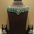 Create a majestic bridal look with this breathtaking Emerald Pearl Kundan Grand Choker Set. Designed with densely layered white Kundan stones and highlighted with rich emerald-green accents, this choker radiates royal elegance.