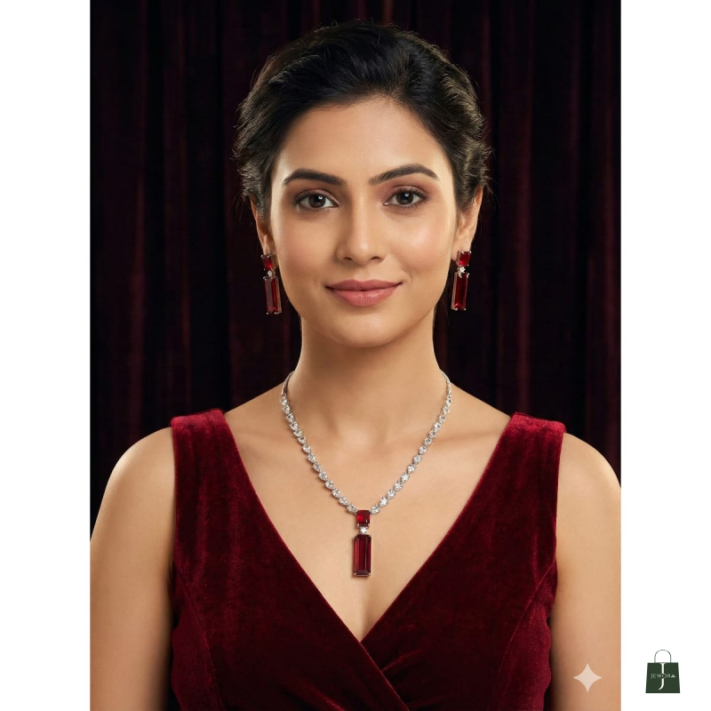 Elevate your elegance with the Emerald Royale Pendant Necklace & Earring Set, a timeless masterpiece crafted for those who appreciate luxury and grace. Featuring radiant emerald-green stones set in a sleek silver-tone finish, this exquisite set includes a statement rectangular pendant necklace paired with matching drop earrings.