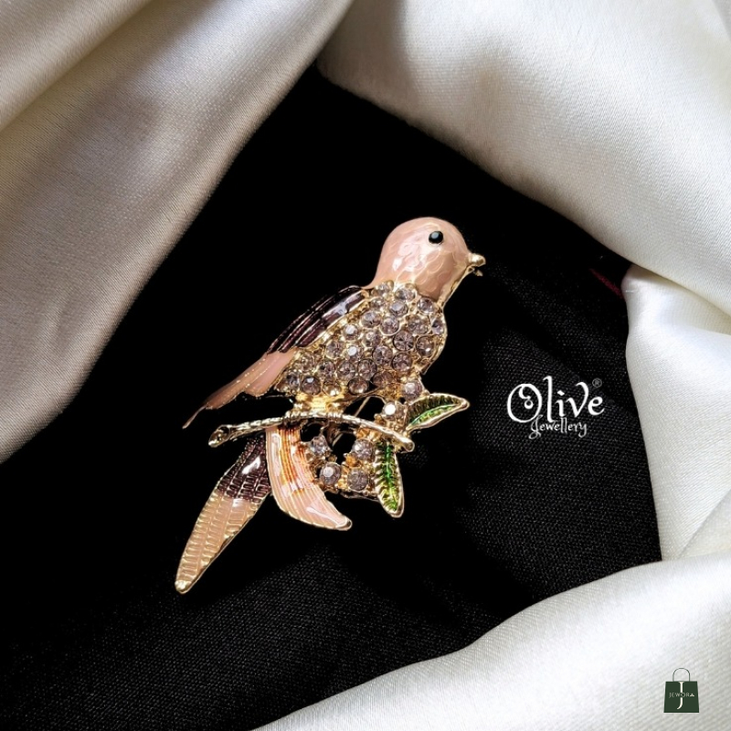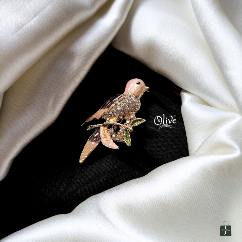 Add a touch of charm and sophistication to your look with this Crystal Songbird Brooch Pin. Designed in a graceful bird silhouette, this brooch features shimmering clear crystals set on a gold-polished alloy base, with soft enamel detailing on the wings and tail. The delicate craftsmanship and subtle pastel tones make it a perfect accessory for both casual elegance and special occasions.