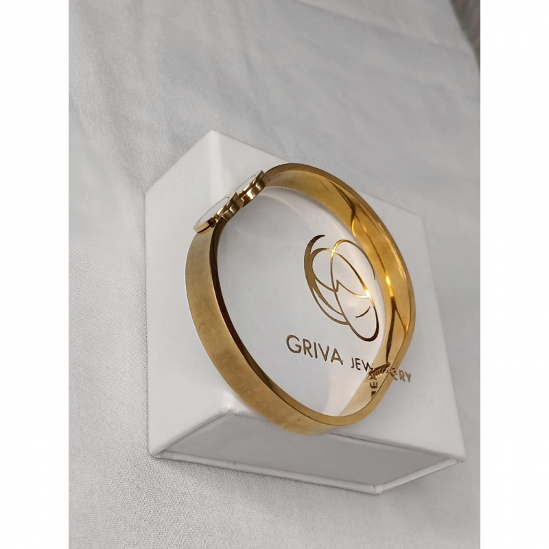 A chic golden bracelet with dual white circle accents, blending modern minimalism with timeless charm. Perfect for casual and party wear.