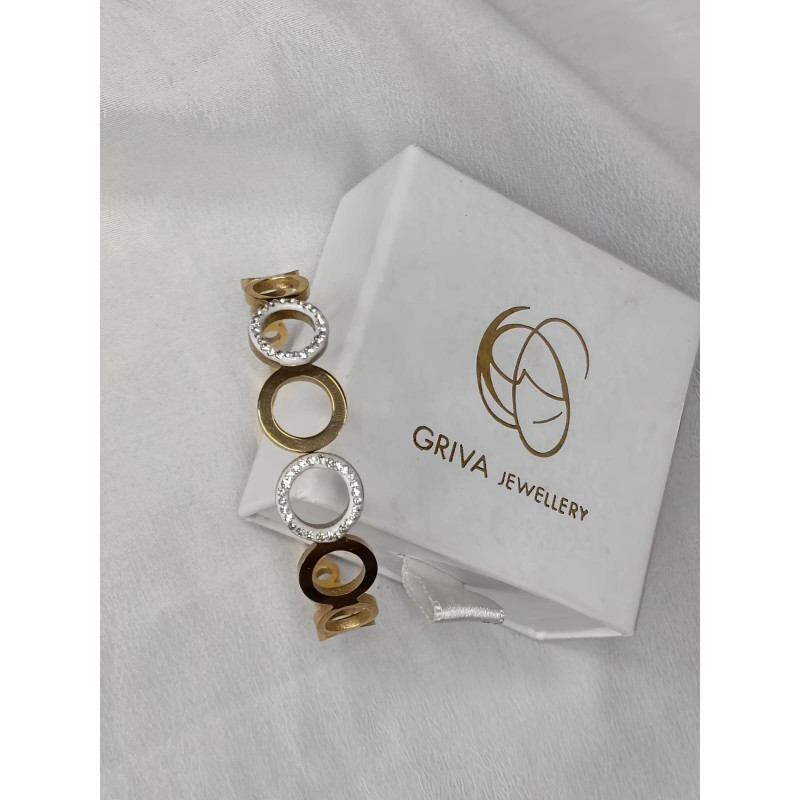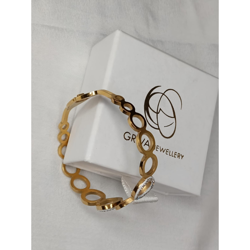 A chic gold-tone bracelet featuring interlocking oval loops, enhanced with crystal-studded accents for a perfect blend of modern charm and timeless grace.
