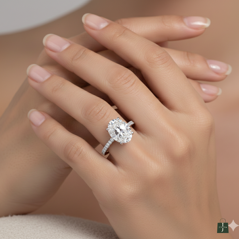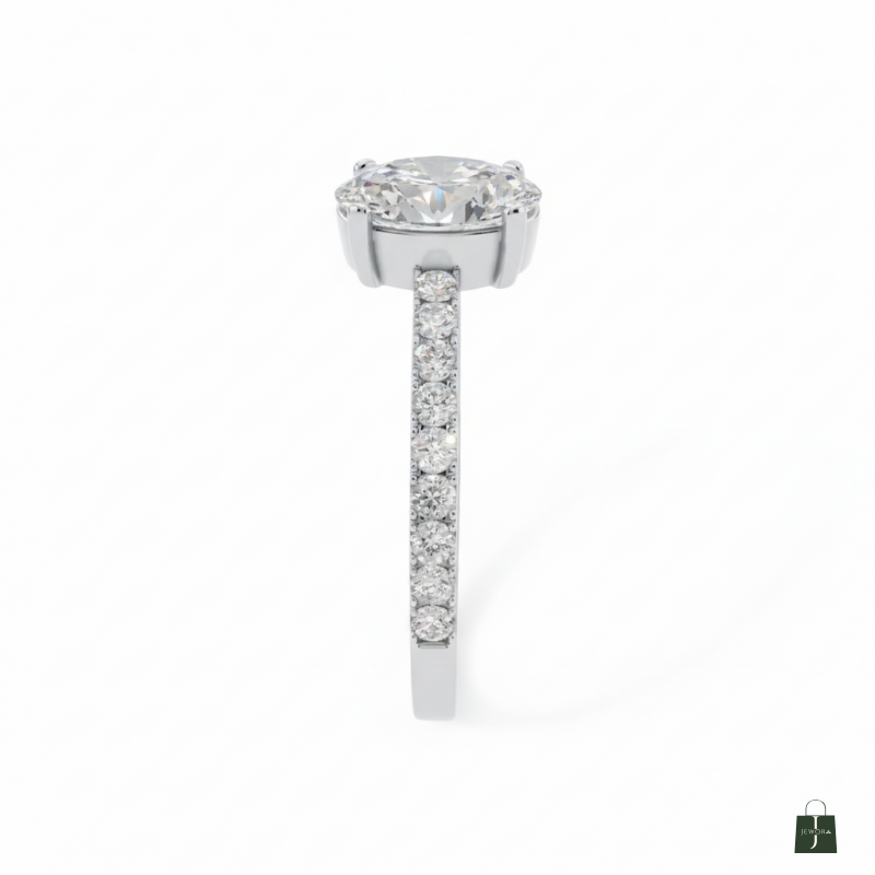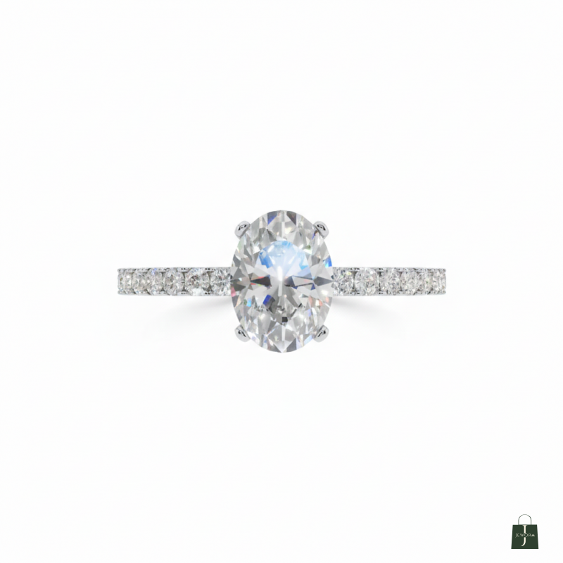 This oval solitaire ring features a brilliant center stone with delicately set diamonds along the shank. Combining classic elegance with subtle sparkle, it’s a timeless piece perfect for special occasions or adding refined sophistication to everyday wear.