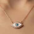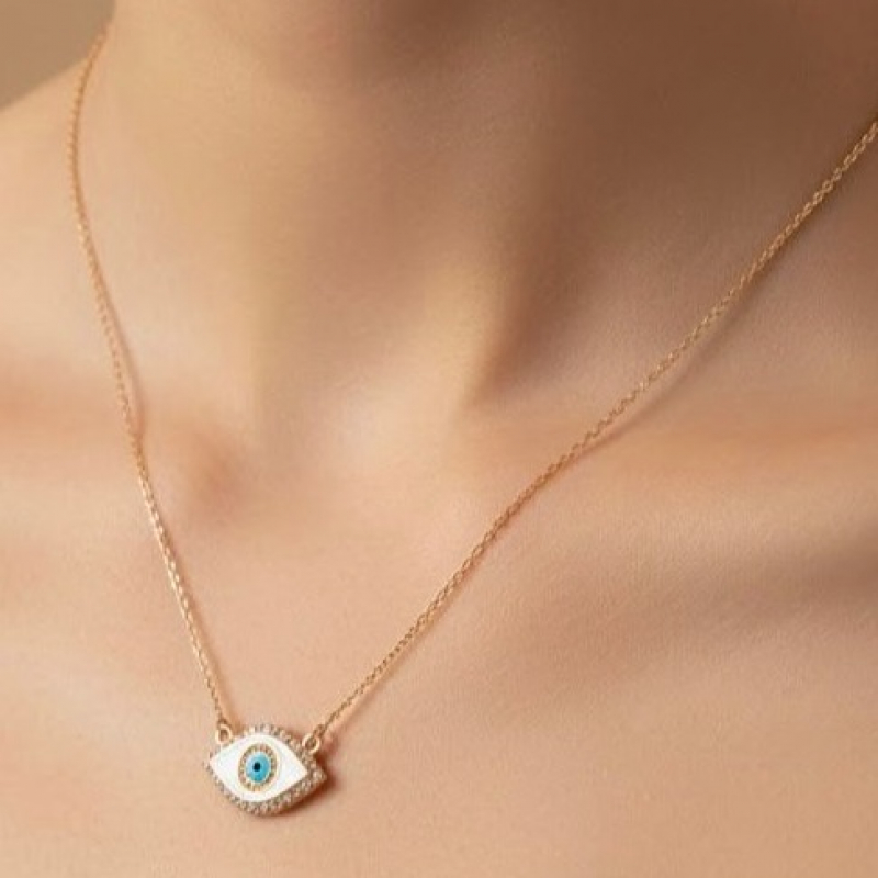 This Stunning Gold Evil Eye Necklace with Pave CZ Accents is a beautiful combination of style and spiritual protection. This delicate pendant, featuring a classic, stylized eye design, is perfect for adding a touch of meaningful elegance to your everyday look.