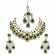 Exquisite Hand-Set Polki & Emerald Green Kundan Jewellery Set - 22K Gold Plated Antique Choker Necklace with Maang Tikka & Jhumka Earrings - Elegant Traditional Statement Jewelry for Brides