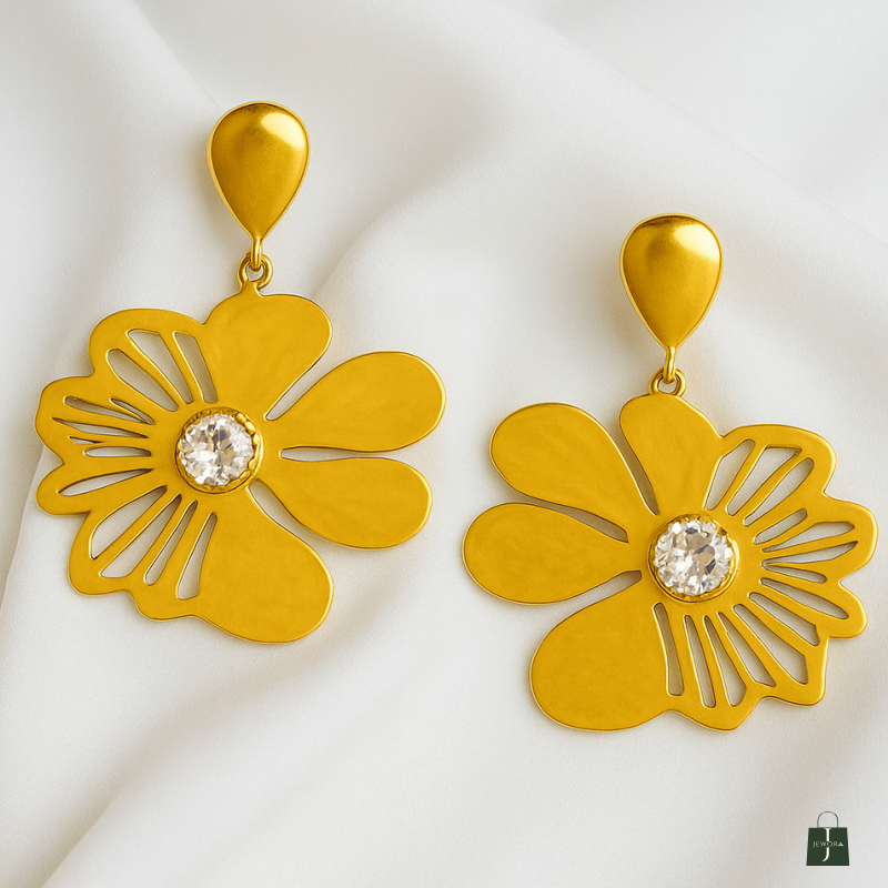 Gold plated party wear drop earring Made of Stainless Steel, Anti-Tarnish Plating, Hypoallergenic, and Skin-friendly. Crafted with a high-quality gold-plated finish.