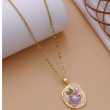 The gold-tone frame and fine matching chain enhance the overall luxurious feel while keeping the necklace lightweight and comfortable for everyday wear. The floral motif symbolizes beauty, renewal, and femininity, making this piece not only stylish but also meaningful. Its subtle colors make it easy to pair with both casual outfits and dressier looks, adding a refined highlight without overpowering your style.