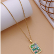 The pendant is framed with a border of sparkling crystal-style stones, enhancing its luxurious appeal while catching the light from every angle. Suspended from a fine gold chain, this necklace offers a lightweight and comfortable fit, making it perfect for all-day wear without feeling heavy.