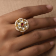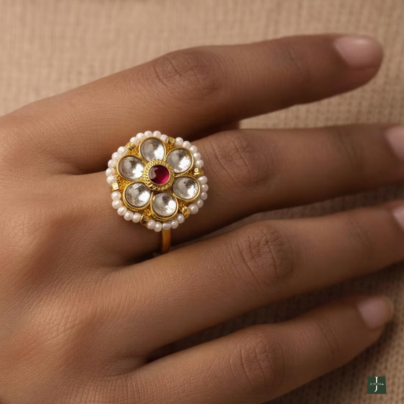 Bring royal elegance to your fingertips with our Floral Kundan Adjustable Gold-Plated Ring, handcrafted to perfection with intricate detailing.