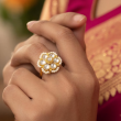 Bring royal elegance to your fingertips with our Floral Kundan Adjustable Gold-Plated Ring, handcrafted to perfection with intricate detailing.