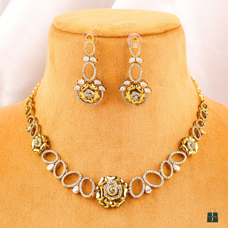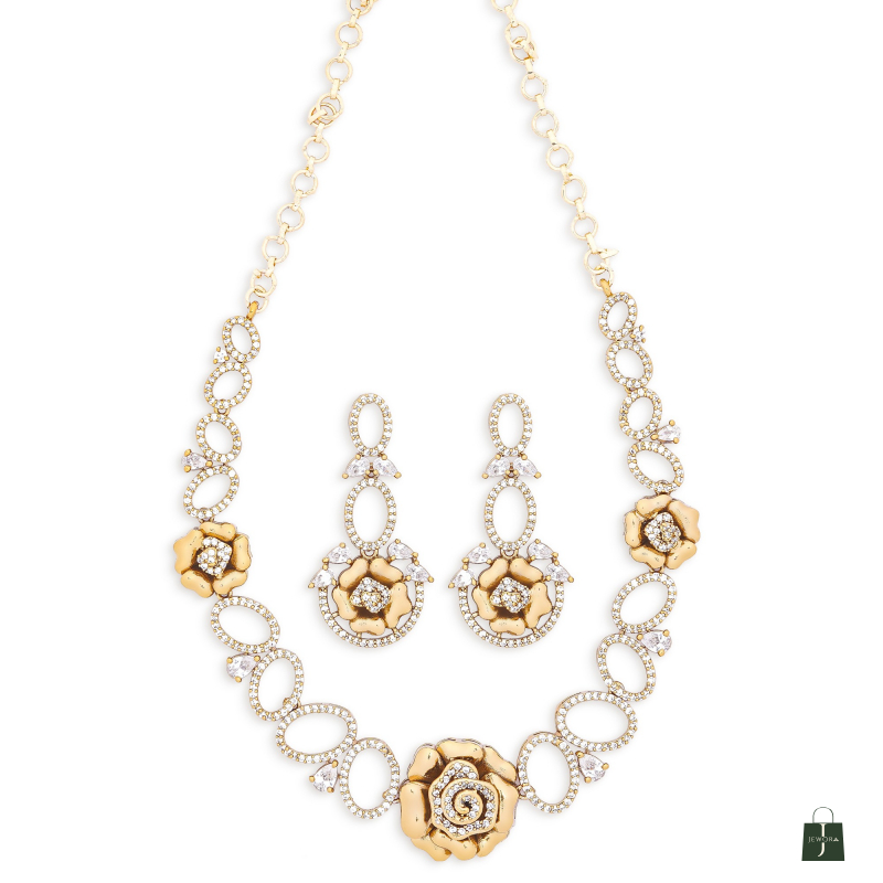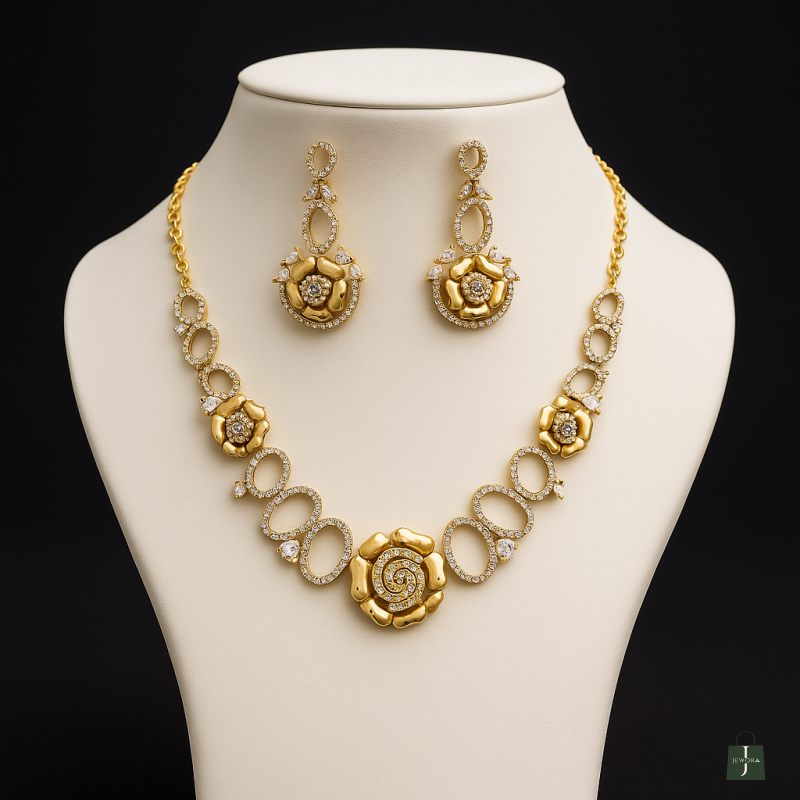 This Floral mehandi polished luxurious shine necklace set made with exquisite craftsmanship paired with matching earrings, This design adds a touch of elegance to any outfit