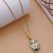 Suspended from a sleek gold chain, this necklace is lightweight and comfortable, perfect for daily wear or special occasions. Its soft color palette pairs effortlessly with both neutral and bright outfits, adding a fresh, feminine touch without overpowering your look.