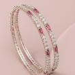 The Floral Stone CZ Diamond Bangle is a timeless accessory that combines sophistication with a touch of modern charm. Crafted from a durable alloy base and coated with a premium silver polish, this bangle showcases a sparkling arrangement of cubic zirconia (CZ) stones, popularly known as American Diamonds. The design features alternating rows of clear diamonds and striking emerald-green rectangular stones, creating a luxurious contrast that elevates the overall appeal. Its slim profile makes it an elegant piece suitable for daily wear, yet the shimmering stones ensure it stands out at festive events and celebrations. This bangle strikes a perfect balance between subtle elegance and statement-making sparkle. Lightweight and comfortable to wear, it pairs seamlessly with both ethnic and contemporary outfits, adding a refined touch of glamour. Whether worn as a single piece or styled with additional bangles for a layered look, the Emerald Green Stone CZ Diamond Bangle is a must-have addition to any woman’s jewellery collection. A true symbol of grace, style, and versatility.