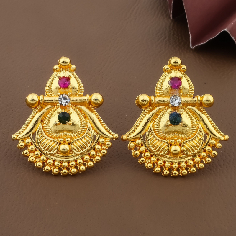 Enhance your jewellery collection with this elegant combo set of two beautifully designed earrings. The first pair features an intricate floral filigree stud design highlighted with a vibrant pink stone at the center, giving it a graceful and classic look. The second pair showcases a traditional ethnic drop earring adorned with colorful pink, white, and green stones along with detailed bead work. Finished with rich gold polish, these earrings are lightweight and stylish, making them perfect for festive occasions, weddings, and everyday ethnic wear.