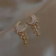 Girl and Pearl Star Moon Drop Earrings for Women – Classic Elegant Jewelry