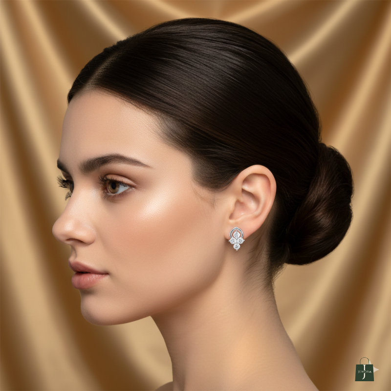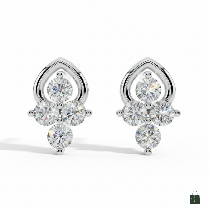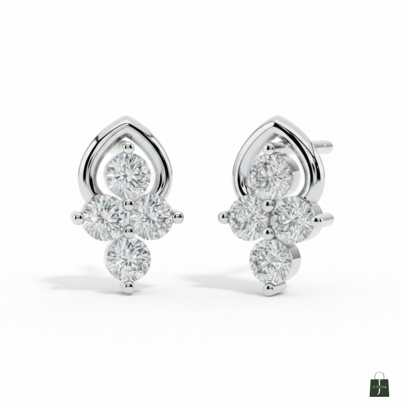 Introducing the elegant Gala Studs 925 Pure Silver, a timeless expression of romance and brilliance. These studs feature a delicate heart or teardrop-shaped frame crafted from polished 925 Pure Silver. Nestled within the frame is a dazzling cluster of four brilliant round-cut stones (three forming a trio and one set above), creating a concentrated sparkle that mimics a multi-carat diamond look. The sophisticated design is perfect for adding refined glamour to your everyday style or elevating your look for a special occasion.