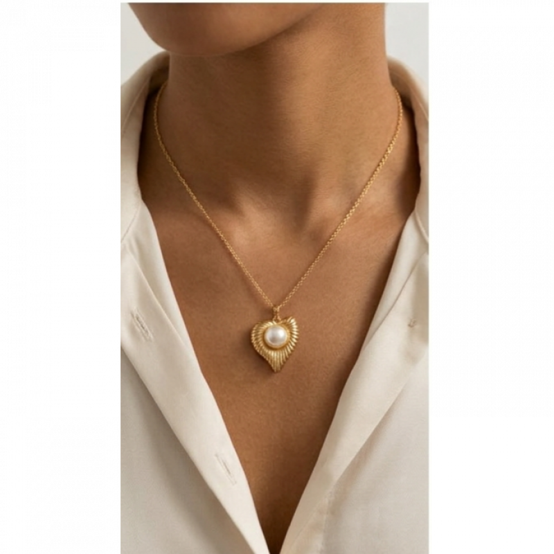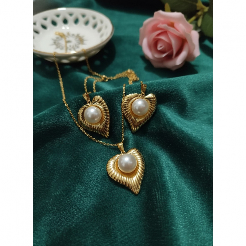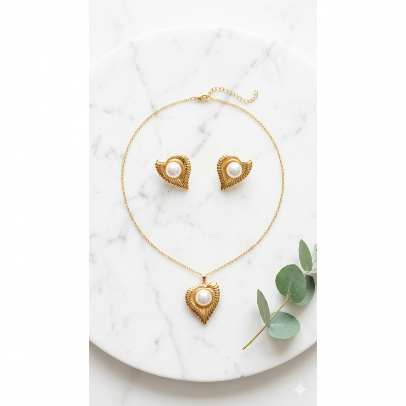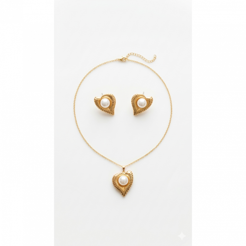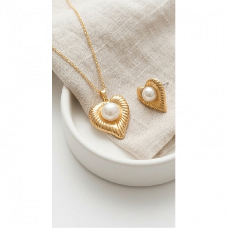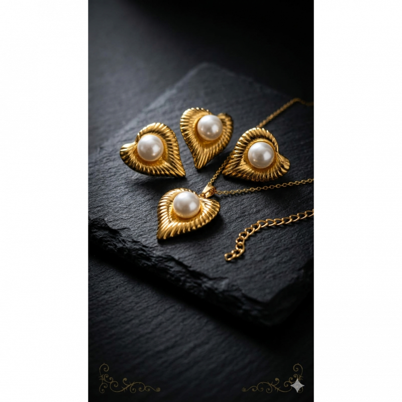 Classic Romance Meets Everyday DurabilityFall in love with the timeless elegance of the GemGleam Textured Gold Pearl Heart Set. This stunning matching necklace and earring set features a beautifully crafted heart silhouette with a unique, vintage-inspired ribbed texture. At the center of each heart rests a lustrous, classic pearl, creating a look that is both romantic and incredibly chic.