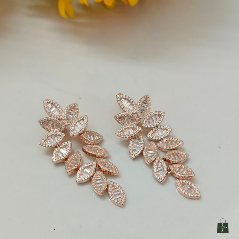 These stunning earrings feature a graceful, cascading vine design in a beautiful rose gold finish.
