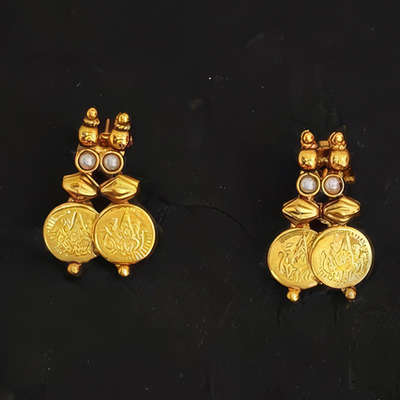 Invite prosperity with this God Laxmi Ji Moti Coin Necklace Set. Featuring sacred Lakshmi coins embossed on lustrous moti pearl accents in temple-style craftsmanship, the choker necklace and matching earrings symbolize wealth and blessings for weddings, pujas, or festivals. Lightweight and adjustable for comfort, this set pairs exquisitely with sarees, lehengas, or ethnic wear, blending spiritual heritage with elegant traditional sparkle.