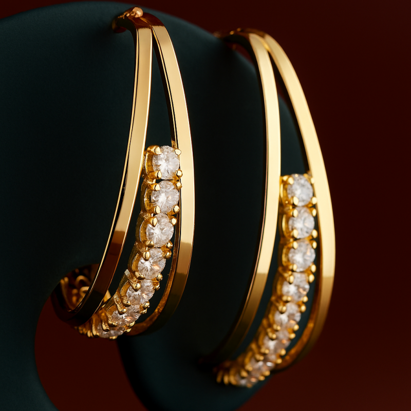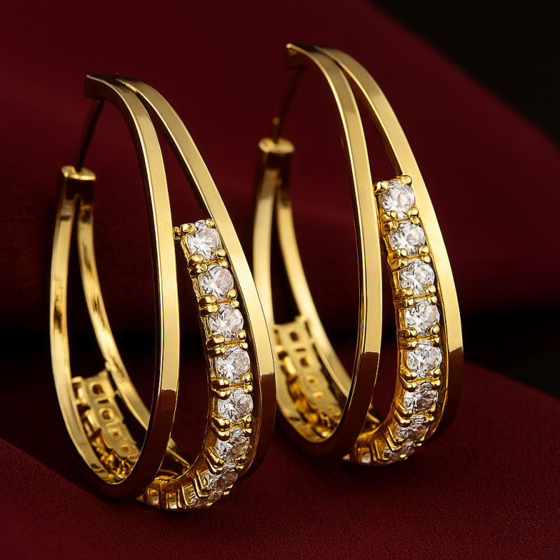 Elevate your everyday style with these Gold CZ Hoop Earrings by Jewora, crafted with a lustrous gold polish and adorned with sparkling American Diamond (CZ) stones. Designed in a timeless hoop silhouette, these earrings add a touch of elegance and sophistication to both festive and party wear looks. Perfect for women who appreciate classic luxury, these earrings are lightweight, durable, and versatile, making them an essential addition to your jewelry collection. Whether paired with traditional outfits or modern ensembles, these hoops bring effortless glamour for any occasion.