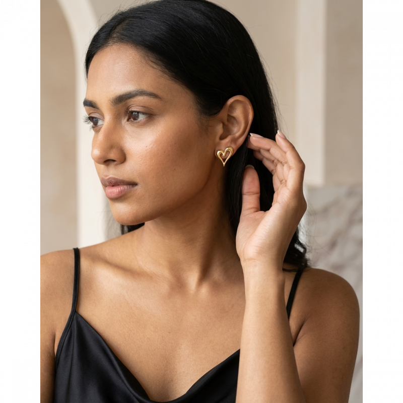 Fall in love all over again — our Gold Open Wispy Heart Stud Earrings feature a beautifully elongated, asymmetric open heart outline with a fluid, free-form silhouette that feels both artistic and deeply romantic. Unlike ordinary heart earrings — this design is unique, sculptural and instantly recognisable. 💛