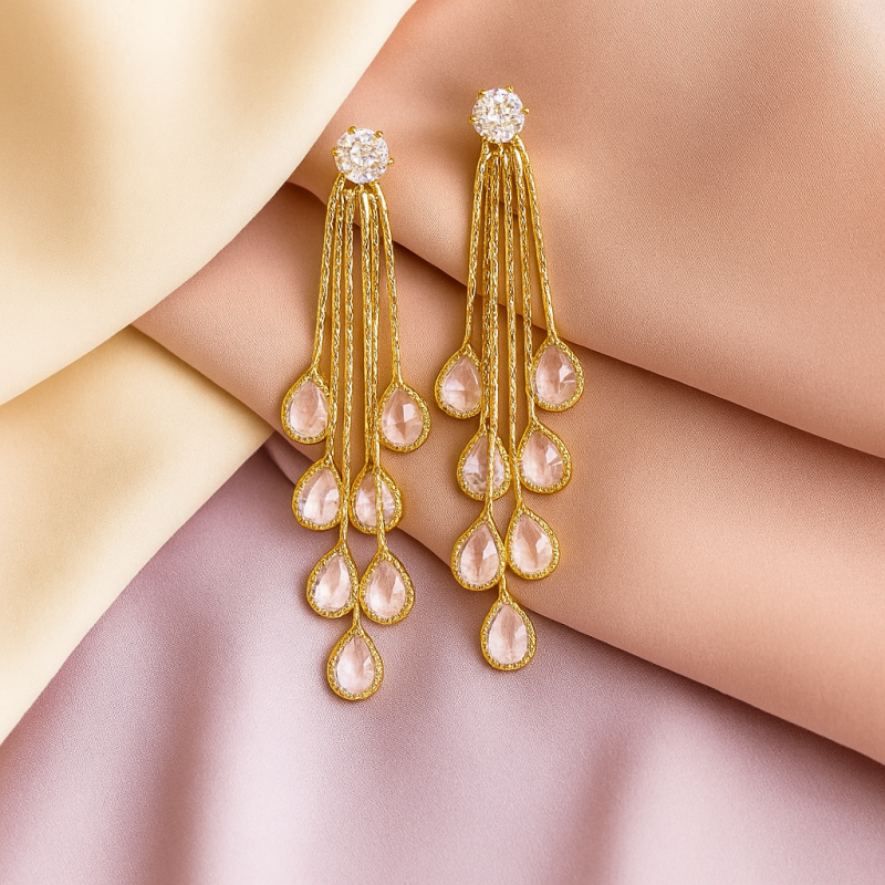 Gold plated party wear drop earring Made of Stainless Steel, Anti-Tarnish Plating, Hypoallergenic, and Skin-friendly. Crafted with a high-quality gold-plated finish.