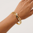 Band Design: The bangle features a unique split-shank or double-row design, where the front half consists of two parallel gold bands that merge into a single solid band at the back.