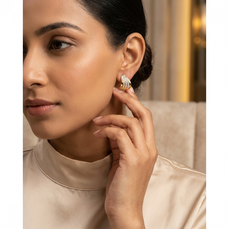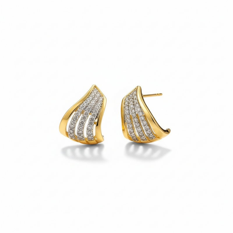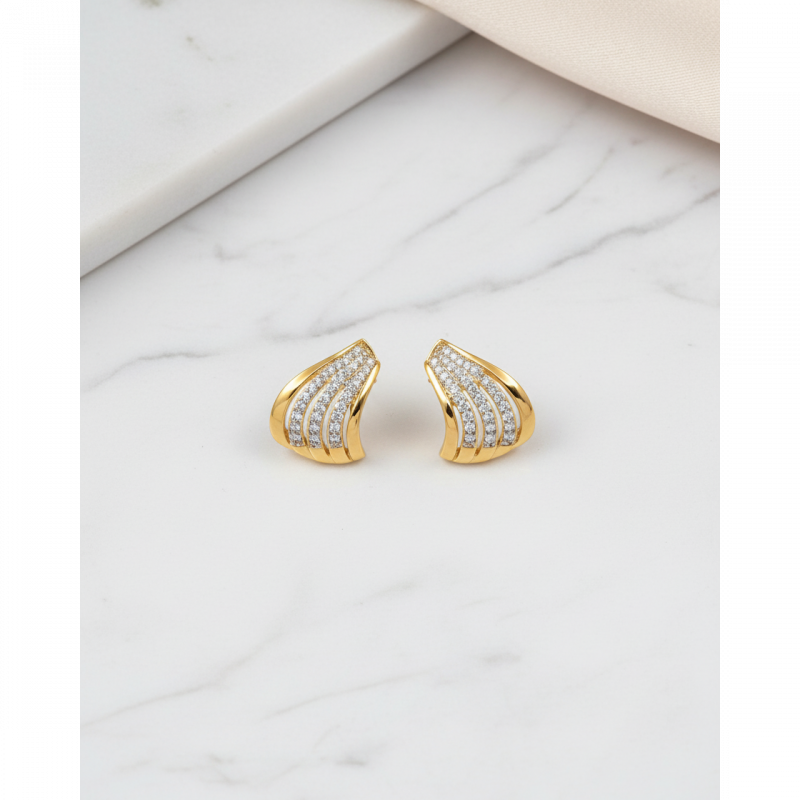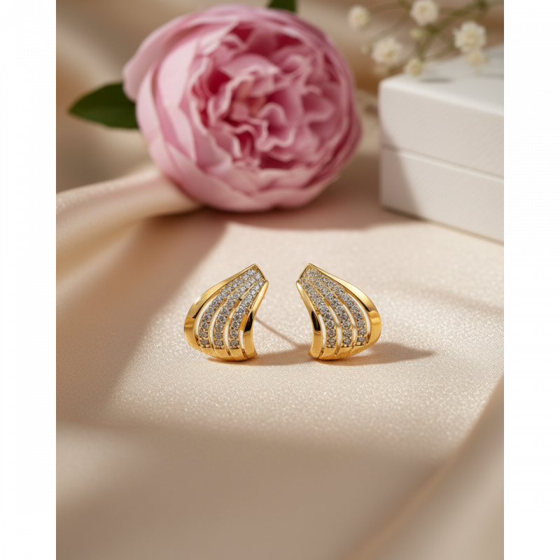 The unique curved design gives a modern and stylish appearance, making these designer stud earrings perfect for both everyday wear and special occasions. Crafted with high-quality gold plating and premium zircon stones, these earrings offer durability, lightweight comfort, and long-lasting shine.