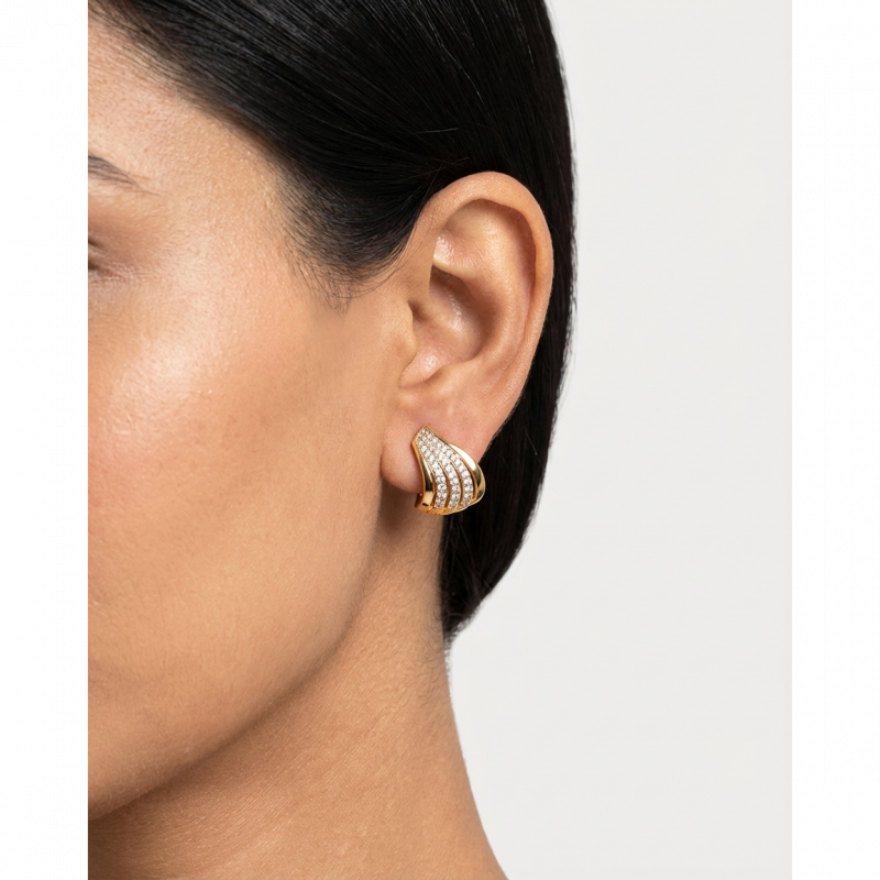 Add a touch of luxury to your jewellery collection with these stunning gold plated curved zircon stud earrings for women. Designed with sparkling cubic zirconia stones, these earrings create a beautiful diamond-like shine that enhances any outfit effortlessly.