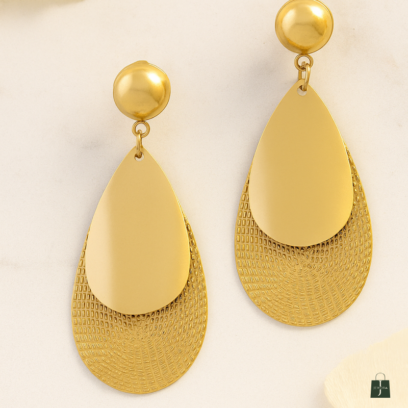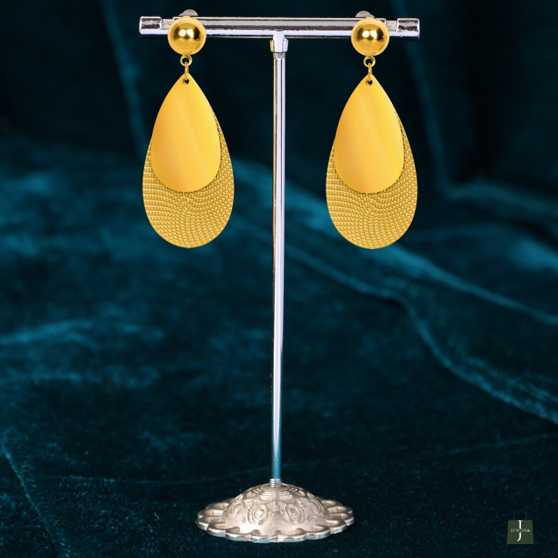 Gold plated party wear drop earring Made of Stainless Steel, Anti-Tarnish Plating, Hypoallergenic, and Skin-friendly. Crafted with a high-quality gold-plated finish.