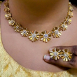 Elevate Your Elegance with this Designer CZ AD floral-patterned Necklace Set,crafted in a radiant Antique Matte Gold-Plated Finish and adorned with Sparkling American Diamond(CZ Stones) . Paired with Easy wear Matching Earring add a glamorous touch,making this set a perfect one for parties,weddings,reception and festivities.It offers the brilliance of fine jewellery at Affordable Price