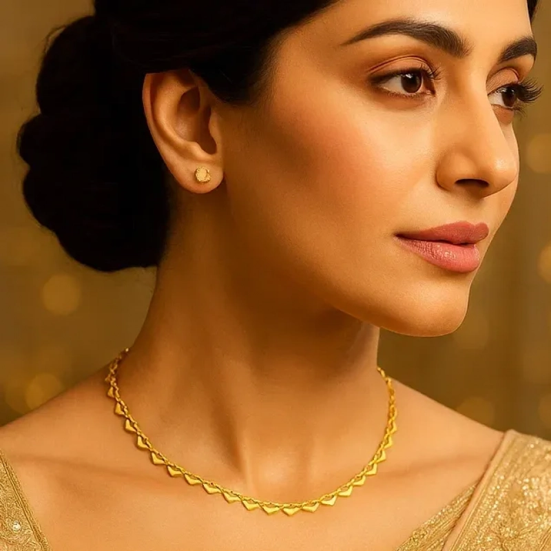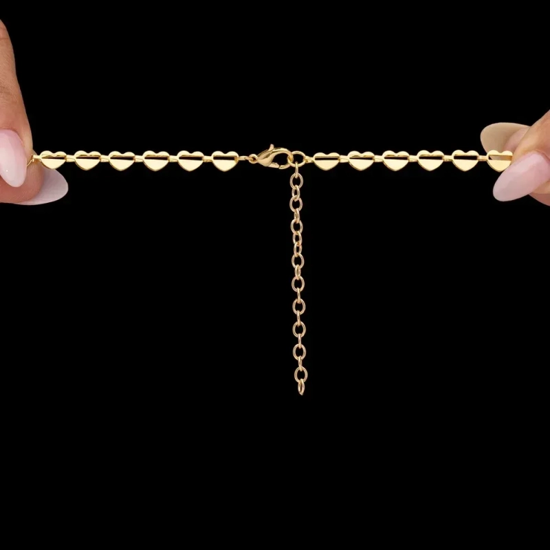 A necklace that feels like a love letter in gold — each heart-shaped link delicately crafted, each curve whispering stories of grace and devotion. The fine chain glimmers with every movement, catching the light in a way that feels soft, subtle, and endlessly elegant. Designed for both beauty and comfort, the lightweight yet sturdy links drape effortlessly along the neckline. Its timeless design makes it the perfect companion — whether you wear it solo for a minimal statement or layer it for a touch of modern romance. More than jewellery, it’s a keepsake of affection — an ideal gift for someone close to your heart or a personal treasure to carry love with you, always