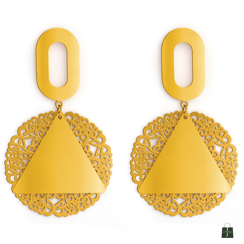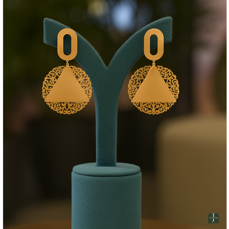 Gold plated party wear drop earring Made of Stainless Steel, Anti-Tarnish Plating, Hypoallergenic, and Skin-friendly. Crafted with a high-quality gold-plated finish.