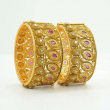 Premium quality gold plated kundan kada bangle set with pink stone ascent and white crystal detail ideal for wedding,festival and ethnic wear.