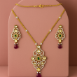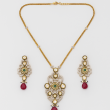 Gold-Plated Kundan Necklace Set with Ruby and Emerald Stones