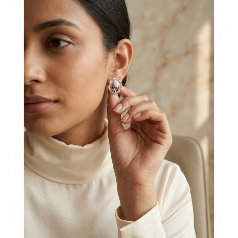 Inspired by the trending old money aesthetic jewellery style, these earrings combine timeless design with modern minimal beauty. The soft lavender color and pearl detail make them perfect for summer outfits, brunch looks, vacations, and everyday styling.