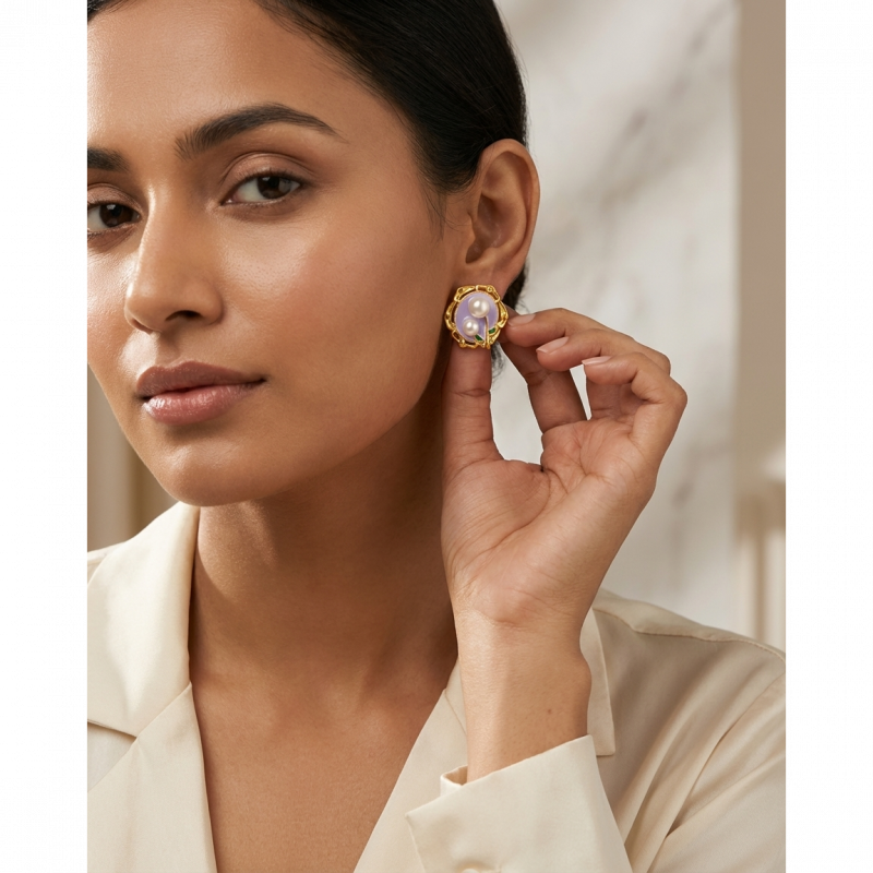 Inspired by the trending old money aesthetic jewellery style, these earrings bring a perfect balance of vintage elegance and modern minimal design. The soft lavender tone combined with pearls makes them ideal for summer outfits, brunch looks, vacations, and everyday styling.