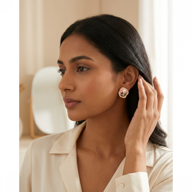 Inspired by the trending old money aesthetic jewellery style, these earrings combine minimal design with classy elegance. The soft pink tone and pearl detail make them perfect for summer outfits, brunch looks, vacations, and everyday styling.