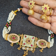 Gold Plated Choker Necklace Set. This bridal wedding party wear choker necklace Jewellery set for girls and women is made with elegant design which looks stylish and goes perfect with any attire.