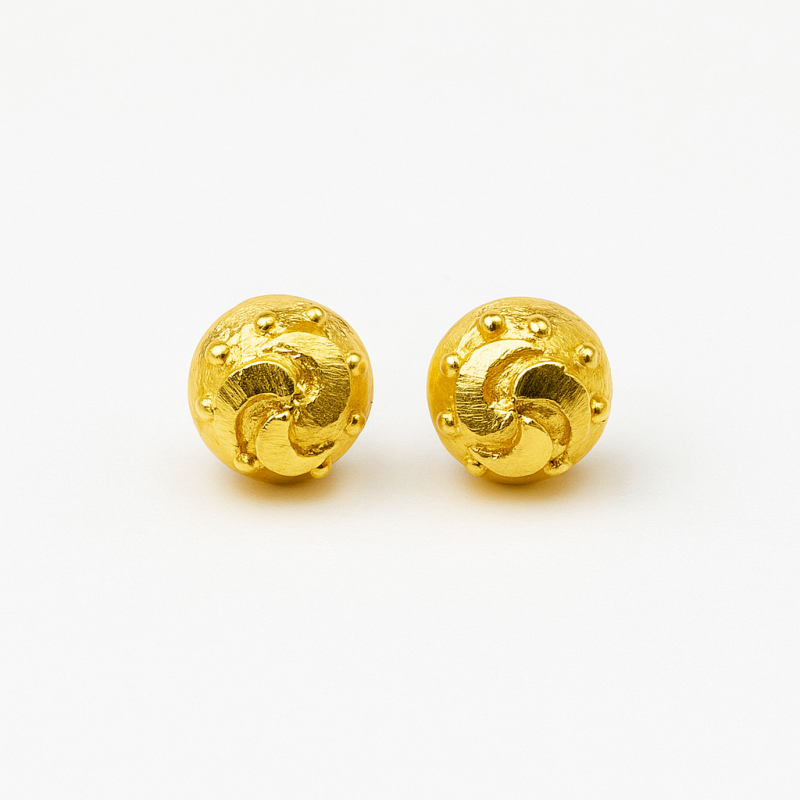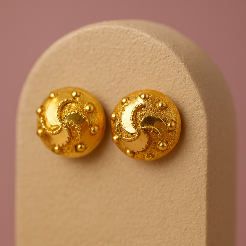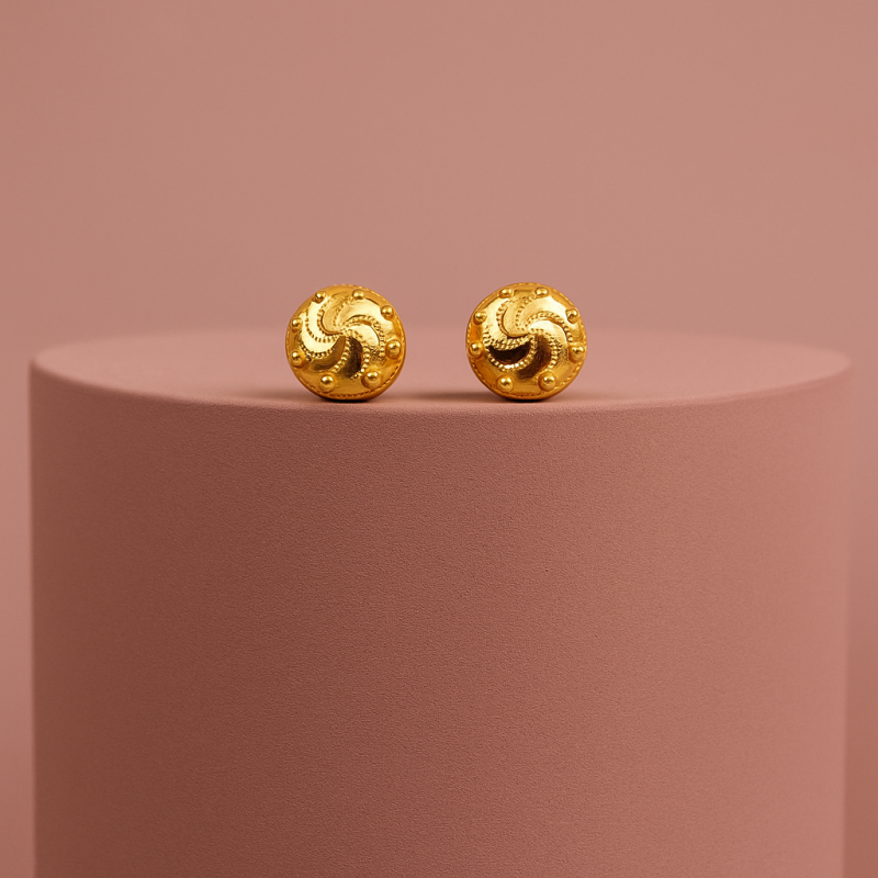 These Gold-Tone Circular Stud Earrings are a perfect blend of simplicity and elegance. Crafted with a gleaming gold-toned finish, the circular design features a subtle textured pattern that adds depth and character. The delicate swirl detailing at the center enhances its visual appeal, making it stand out while still being versatile for everyday wear. Lightweight and comfortable, these earrings can complement both ethnic and modern outfits, making them a go-to accessory for office wear, casual outings, or festive gatherings.