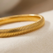 Iconic Texture: The fine, parallel ribbing creates a "liquid gold" effect that catches the light with every movement of your wrist.