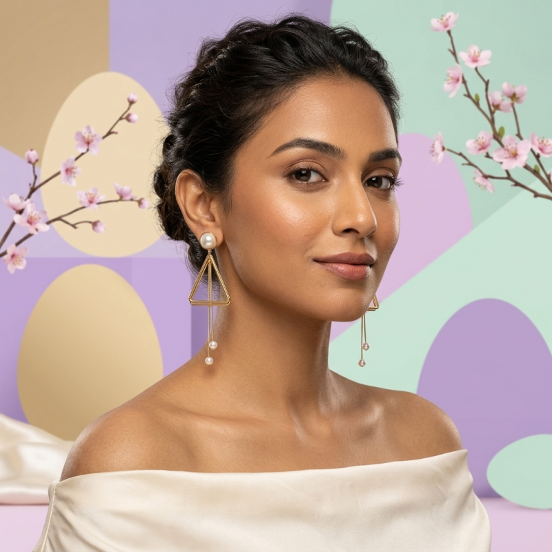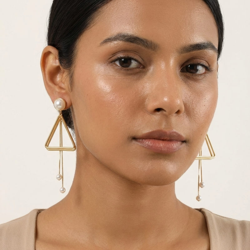 Art-Deco Infusion: The sharp lines of the triangle contrast beautifully with the soft glow of the pearls, making these a perfect statement for the modern minimalist.