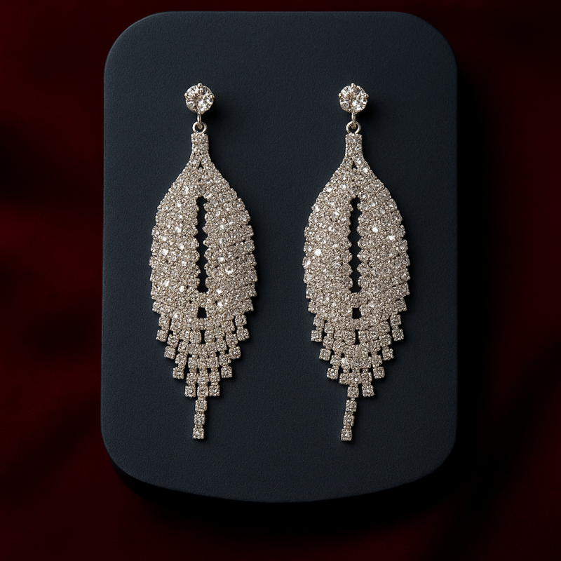 Gold White Diamond Drop Earrings bring runway sparkle to your special moments. Crafted in glossy gold polish and pavé-set with brilliant American Diamond (CZ) stones, these elongated drops shimmer with every move. The layered fringe silhouette flatters all face shapes and adds instant glamour to party wear, festive outfits, and bridal looks. Lightweight yet striking, this Jewora essential pairs beautifully with sarees, lehengas, and evening gowns for a luxe finish.
