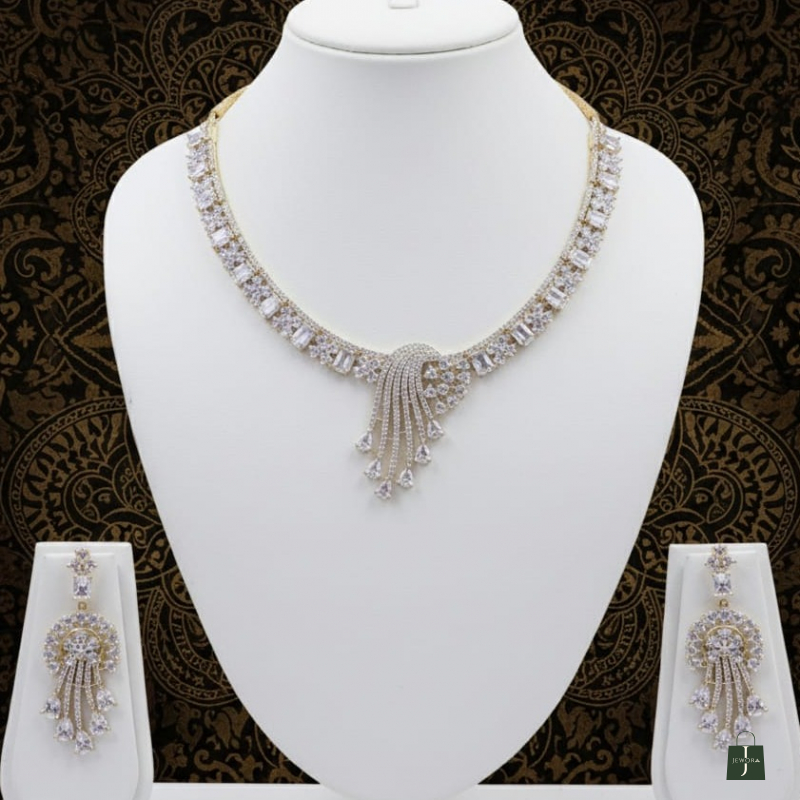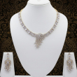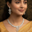The matching chandelier-style earrings mirror the cascading motif, offering a harmonious and glamorous finish. This set is ideal for weddings, receptions, formal evenings, and grand celebrations.