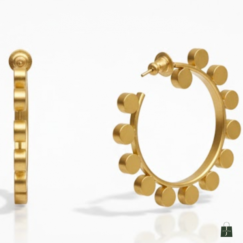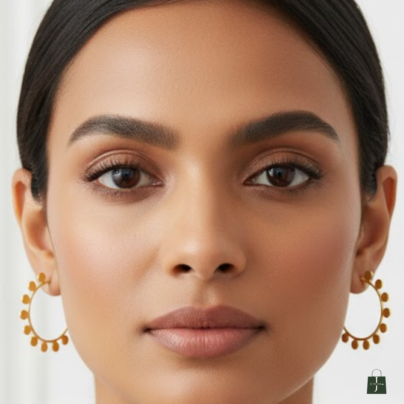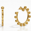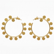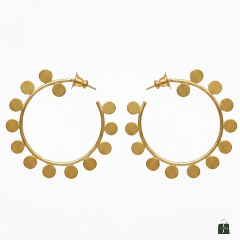Trendy golden hoop earrings accented with delicate dotted discs around the rim. Lightweight, stylish, and perfect for everyday glam.