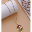 Elevate your everyday style with this elegant oval floral pendant necklace, designed to bring a refined and artistic touch to your jewelry collection. Featuring a delicate gold-tone chain, this necklace showcases a beautifully detailed enamel pendant with rich maroon and soft pink tones that blend seamlessly for a luxurious look.