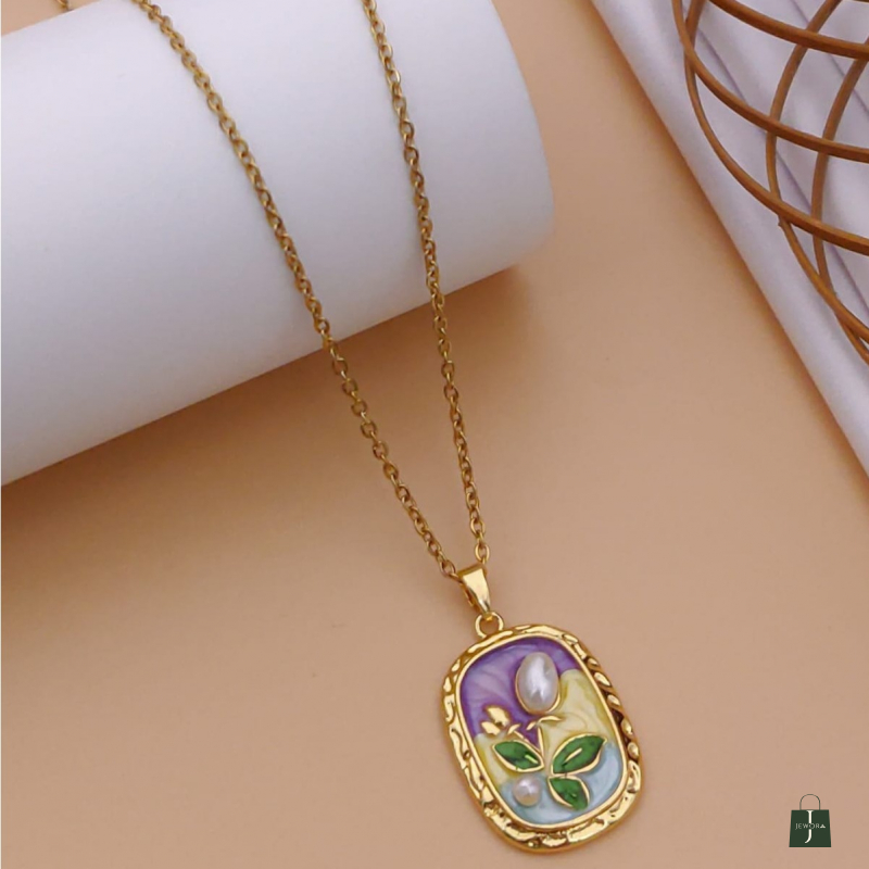 Ideal as a thoughtful gift for birthdays, anniversaries, weddings, or festive occasions, this necklace symbolizes beauty, creativity, and timeless style. Its unique enamel artwork and delicate pearl accents make it a standout accessory for anyone who appreciates elegant and feminine jewelry.